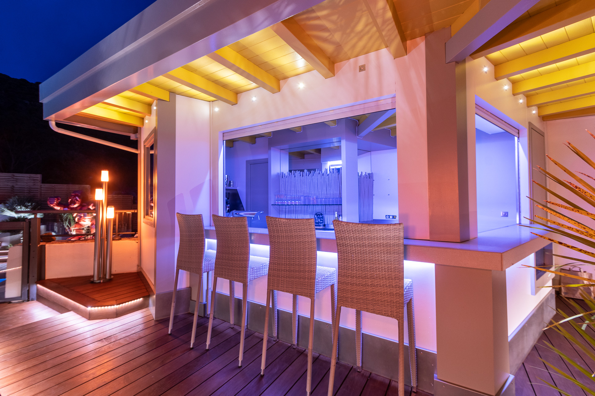 Immerse yourself in the gentle warmth of the Mediterranean sun while lounging in the relaxed atmosphere of the Salvi Pool Bar. Located by our heated pool, surrounded by exotic wood and boasting stunning views of the Bay of Calvi, our bar is the perfect spot for moments of absolute relaxation. Whether you want to sunbathe on a lounger or cool off in the shade of our chic pergola, the Salvi Pool Bar caters to all your desires for comfort and well-being.